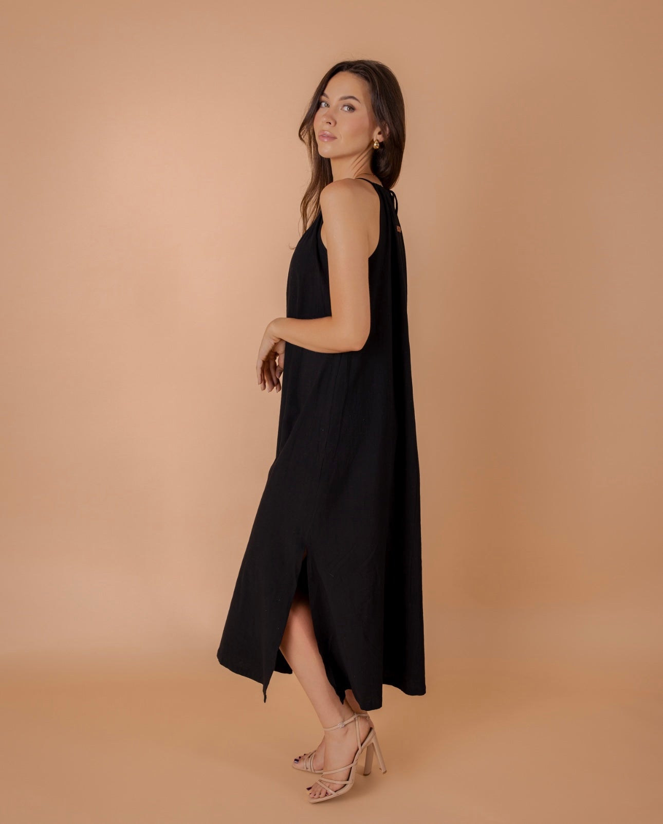 Introducing the Aria maxi dress designed for both style and comfort. It features an adjustable halter neck strap that allows you to customise the fit to your preference. Its flowing silhouette drapes beautifully with side splits creating a flattering look that moves with you.