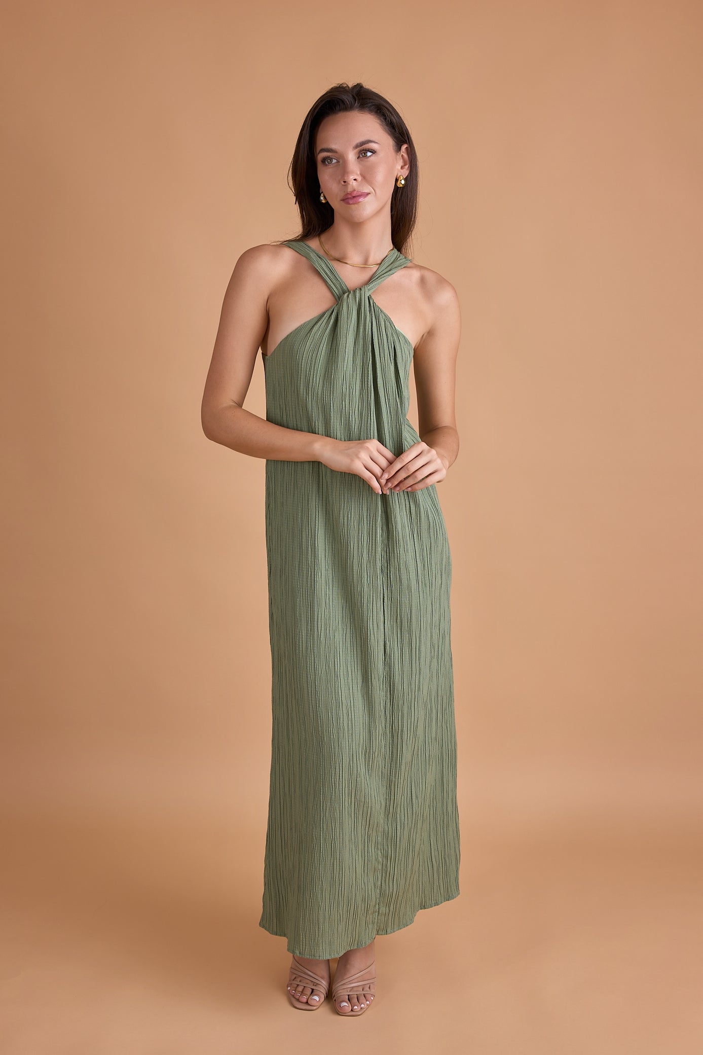 The Chloe Maxi Dress is a stunning addition to our resort wear collection. Fully lined for comfort, it drapes beautifully, enhancing your silhouette. The eye-catching cross feature at the front neckline adds a modern touch, perfect for effortless elegance at any occasion. Embrace the flow of this chic maxi dress and make a statement wherever your travels take you.