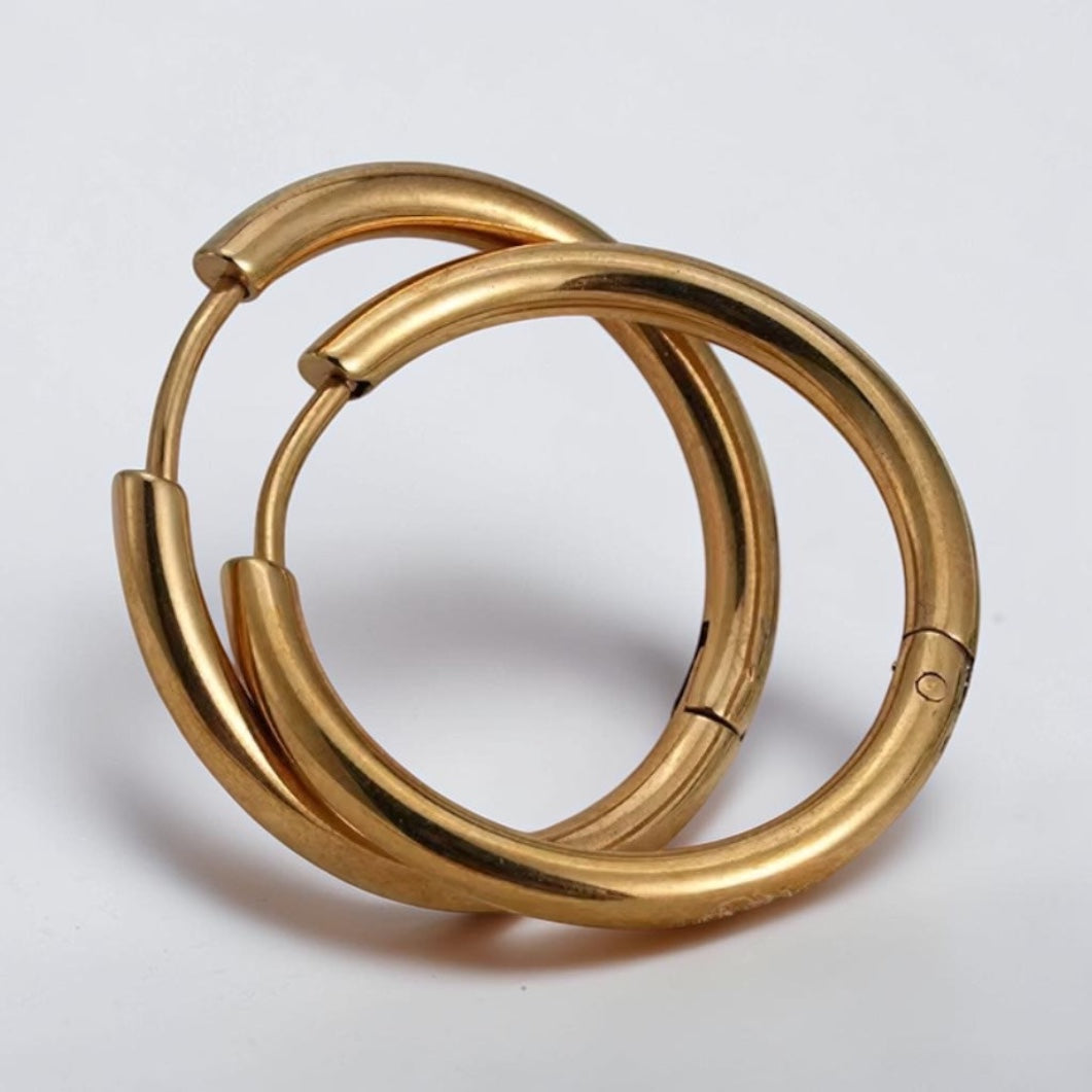 Our Classic Hoop earrings are available in four versatile sizes: 8mm, 10mm, 12mm, and 14mm. Designed for individual wear or chic stacking, these lightweight hoops feature a sleek, polished finish that adds elegance to any outfit. Perfect for both casual and dressy occasions, mix and match different sizes to create your personalized ear stack and express your unique style effortlessly!